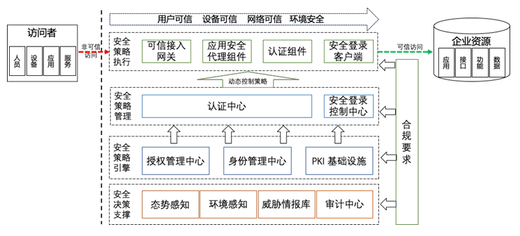 方案价值零信任安全方案,旨在帮助客户在不可信的网络环境下,以身份为中心,通过动态访问控制技术,以细粒度的应用、接口、和数据为核心保护对象,遵循最小权限原则,构筑端到端的逻辑身份边界。方案以统一认证、身份管理、授权管理、策略分析及实时监控为核心出发点,帮助客户构建基于零信任的安全架构,为企业数字化转型保驾护航。