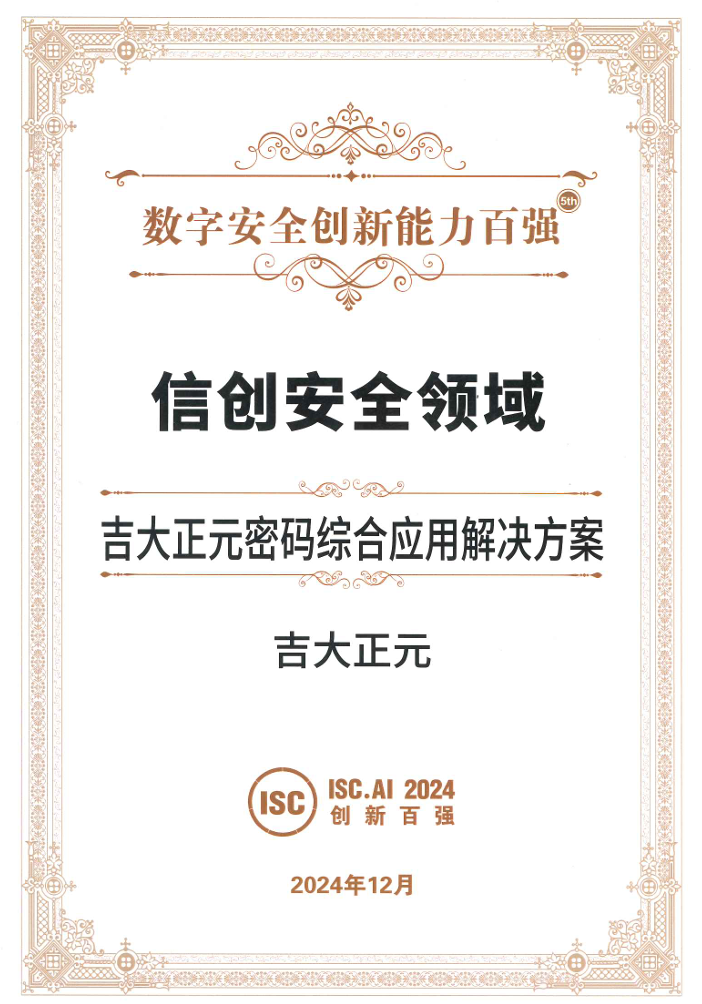 近日,ISC.AI创新技术论坛暨ISC.AI 2024创新能力百强(简称“创新百强”)颁奖典礼在北京圆满落幕。长春吉大正元信息技术股份有限公司(简称:吉大正元 股票代码:003029)凭借全栈信创集成与创新能力入选“信创安全领域”赛道代表厂商,荣获ISC.AI 2024数字安全创新能力百强,并同时容登ISC.AI 2024创新能力全景图谱。