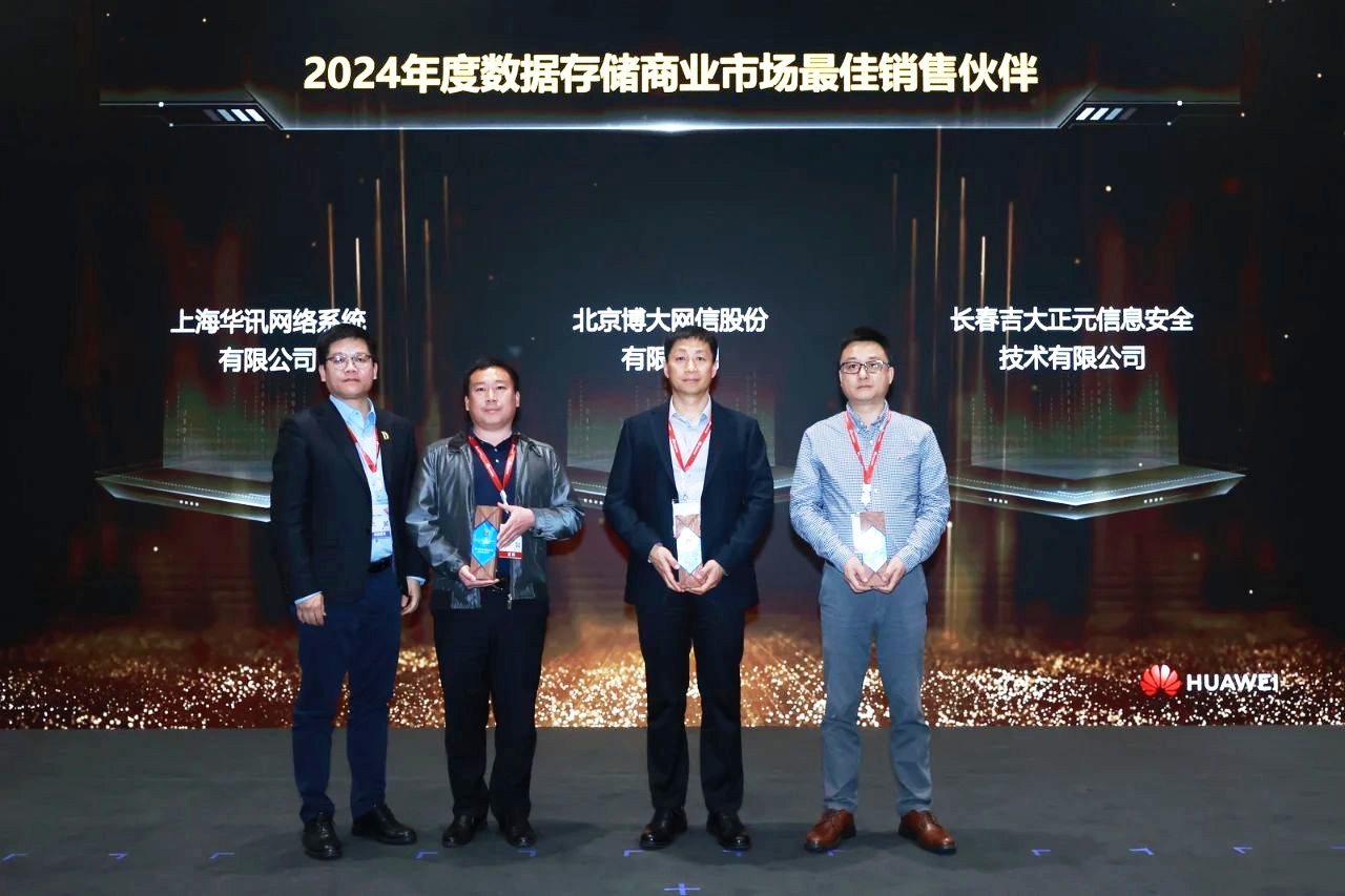 随后在“共赢存储商业市场百亿未来”颁奖环节,华为中国政企数据存储解决方案销售部部长唐浩、华为数据存储产品线产业发展部部长戈前程为2024年度优秀伙伴和个人进行颁奖,旨在激励更多的伙伴积极主动参与数据存储合作,吉大正元荣膺“2024年度存储商业市场最佳销售伙伴”称号。