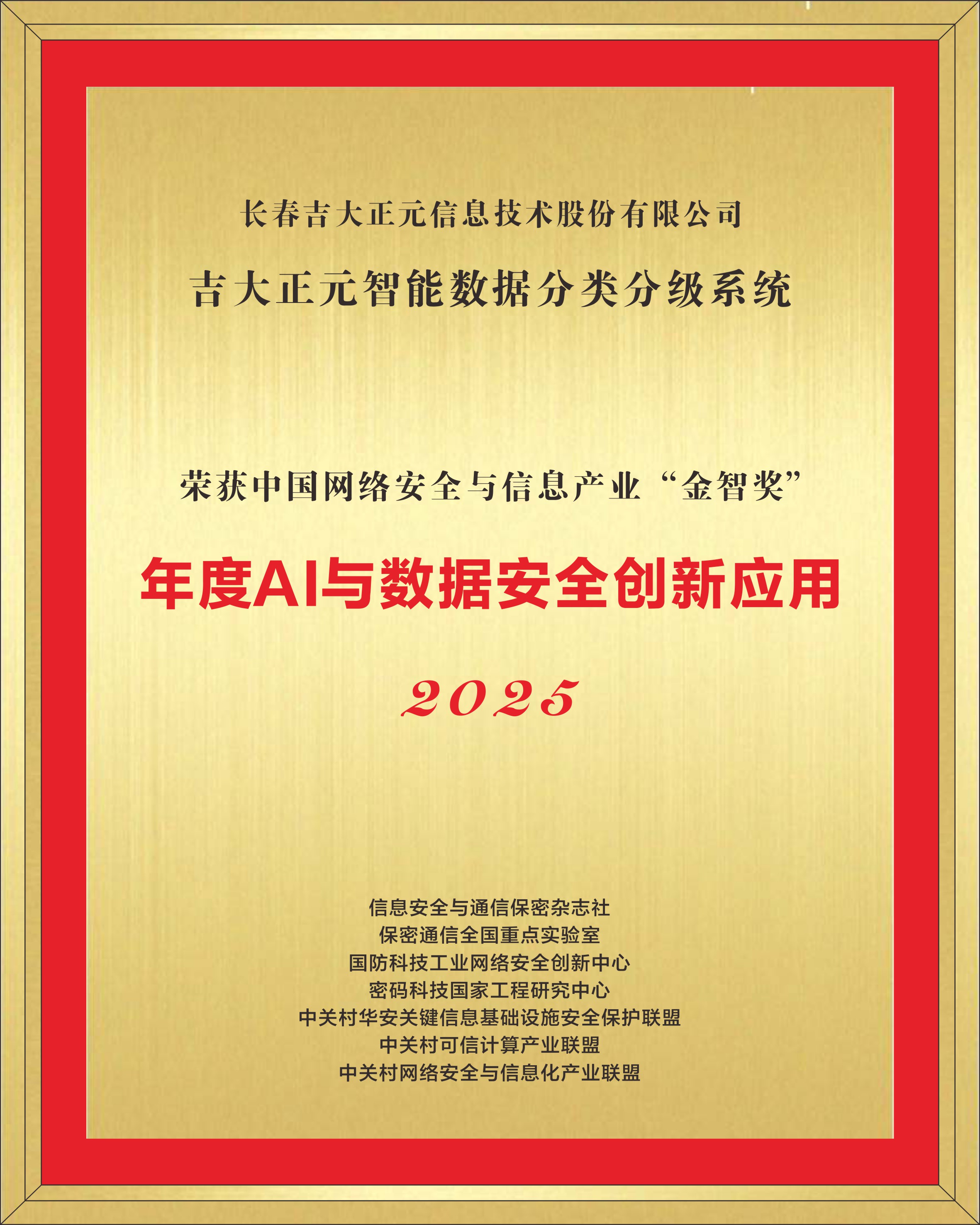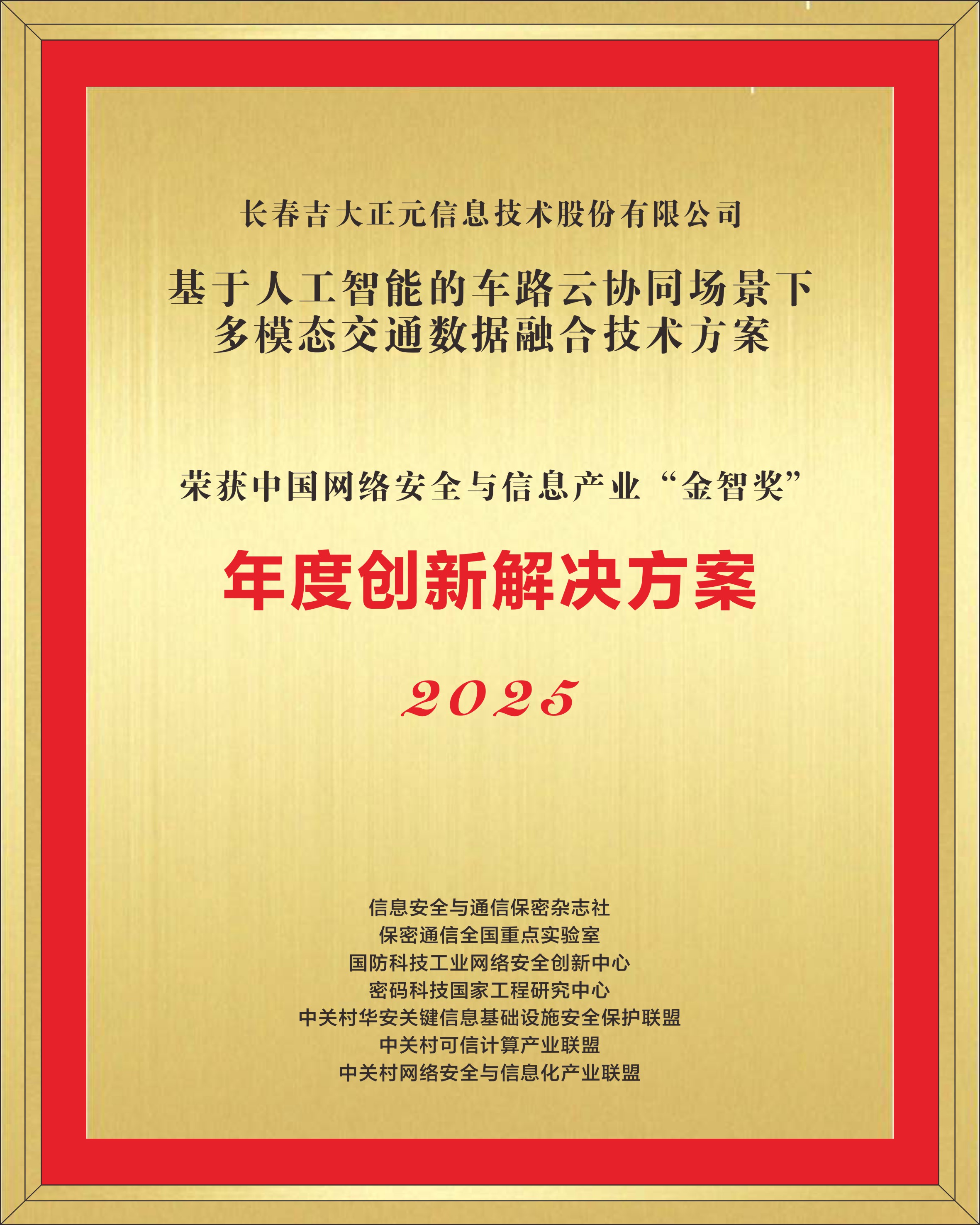 近日,2025年度(第九届)中国网络安全与信息产业“金智奖”评选结果隆重揭晓。长春吉大正元信息技术股份有限公司(简称:吉大正元 股票代码:003029)凭借卓越的技术创新能力与扎实的产业实践,一举荣膺 “年度创新领航企业” ,其自主研发的 “智能数据分类分级系统” 获评 “年度AI与数据安全创新应用” ,同时 “基于人工智能的车路云协同场景下多模态交通数据融合技术方案” 荣获 “年度创新解决方案” 。三项大奖的集中斩获,进一步彰显和巩固了吉大正元作为数字安全领军企业在技术创新、产品落地与场景融合方面的综合实力和领先地位。