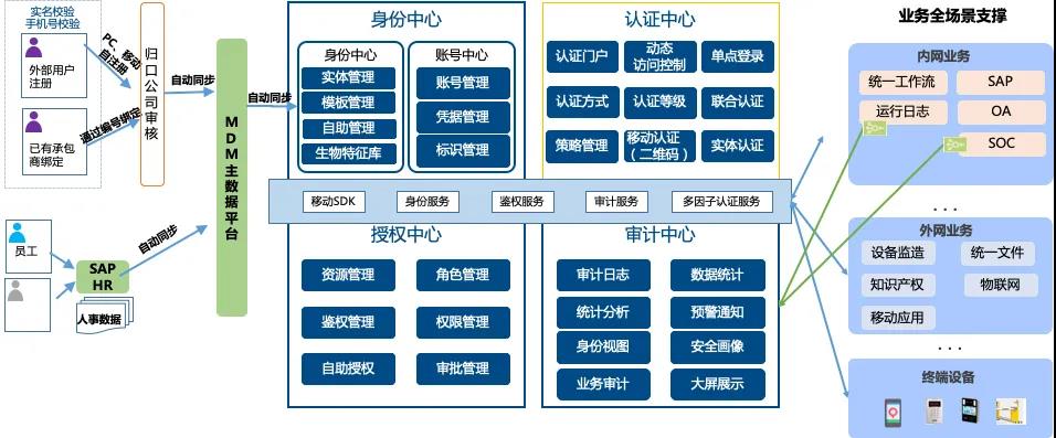 吉大正元零信任安全方案已在众多行业用户落地实施,如为某集团用户建立一套基于零信任架构的统一身份认证管理平台,通过主数据管理平台(MDM)获取基础身份,集合管理身份信息,实现平台开放的身份管理和服务能力;支撑用户、设备(PC、移动等)、应用、服务等实体的安全接入;在应用层提供安全、便捷、高效的统一身份认证与授权审计等核心能力,保障企业核心数据资产的安全访问。