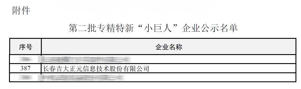 经吉林省工信厅初核推荐、国家行业协会限定性条件论证、工信部专家组审核,吉大正元成功入选工业和信息化部开展的第二批专精特新“小巨人”企业认定名单。