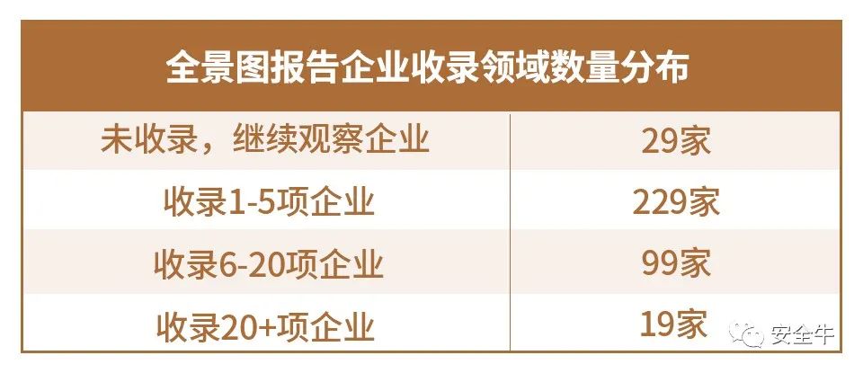 在第八版全景图报告中,在收录的347家国产网络安全企业和相关行业机构中仅有99家收录数量达到6-20项。