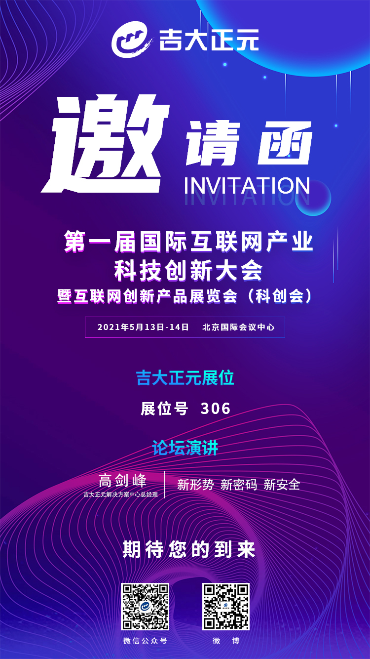 新密码 新安全”主题演讲。此外,吉大正元还将携密码安全产品及行业解决方案亮相大会展示区(展号:306),诚邀您的莅临!