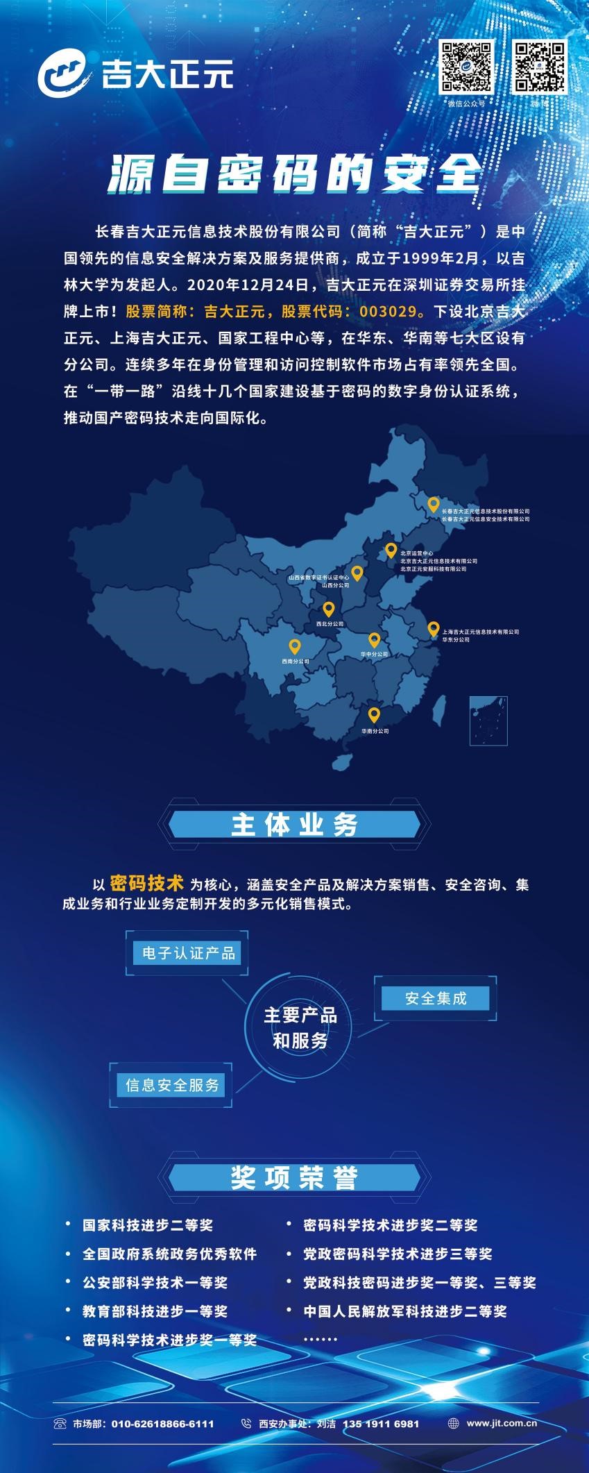 吉大正元成立于1999年,是国内知名的信息安全产品、服务及解决方案提供商,是电子认证领域的领先企业。吉大正元以密码技术为核心,开展信息安全软件的研发、生产和销售及服务,面向政府、军工、金融、能源、电信等重点行业和领域提供基于密码的可信身份认证及可信数据保障等多层次、全方位的综合性安全解决方案,为其信息系统提供关键的安全支撑与保障。
