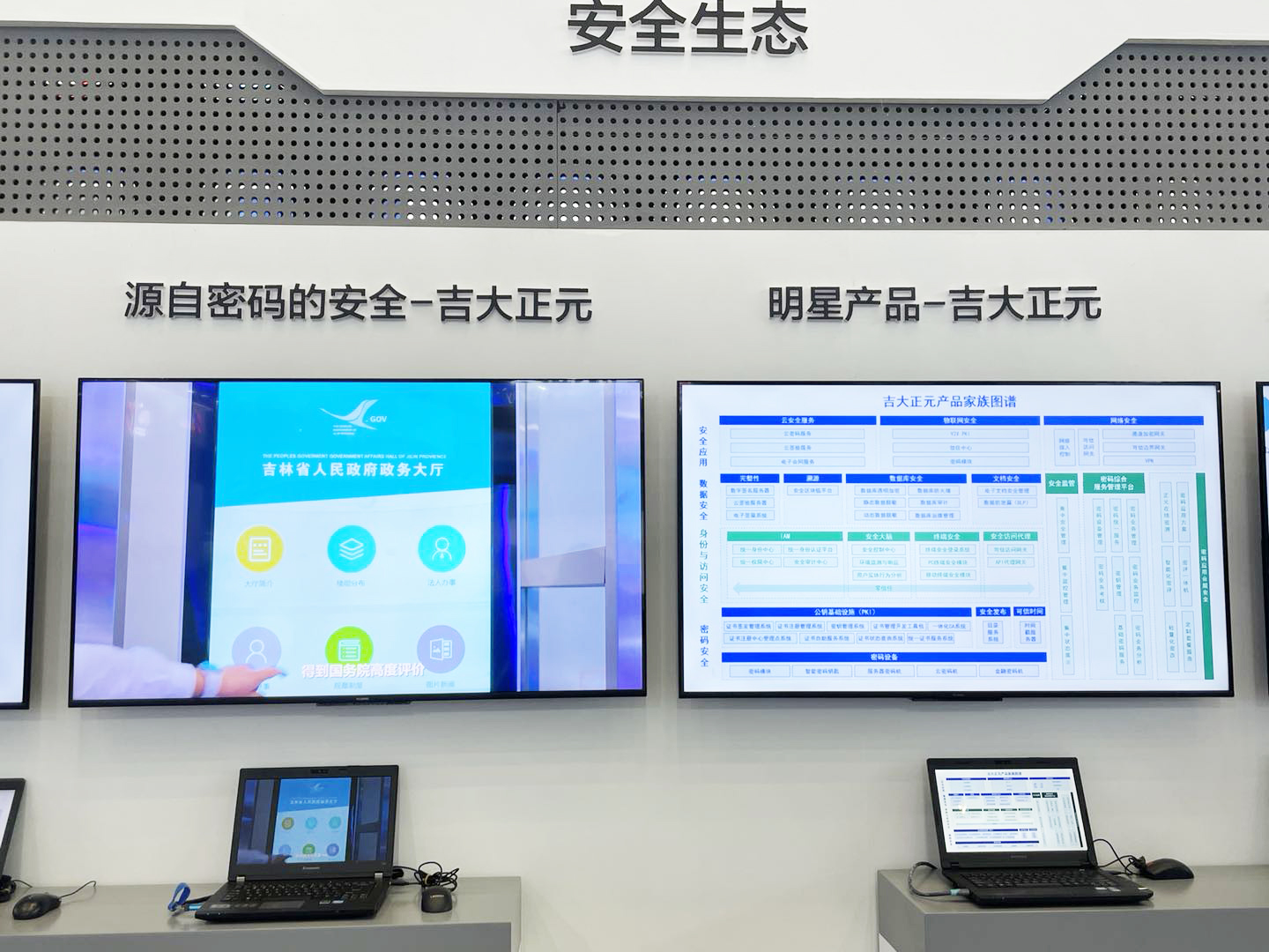 吉大正元打造了密码安全、身份与访问安全、数据安全和安全应用等完整产品线,为用户提供全方位的整体解决方案和集成服务。展位上重点展示了PKI、物联网V2X PKI、身份管理与访问控制(IAM)、密码综合服务管理平台、安全区块链平台和数据安全方案六大明星产品。具体展示内容有: