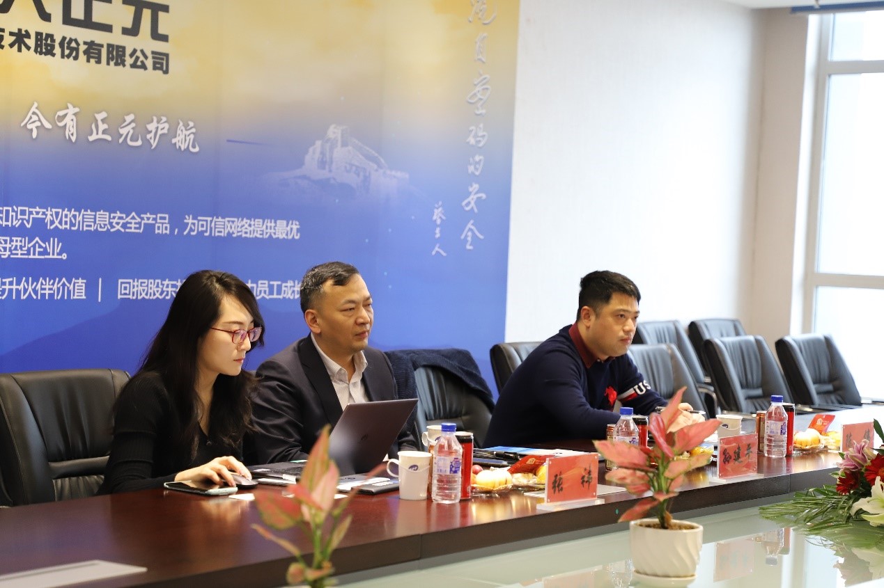 首先,于总对孙总一行到吉大正元参观访问表示热烈欢迎,随后张智勇向客人介绍了正元这些年发展,公司关于安全产品、安全服务等方面的业务情况。刘志成、李季也分别对合作历程及解决方案做了整体汇报。