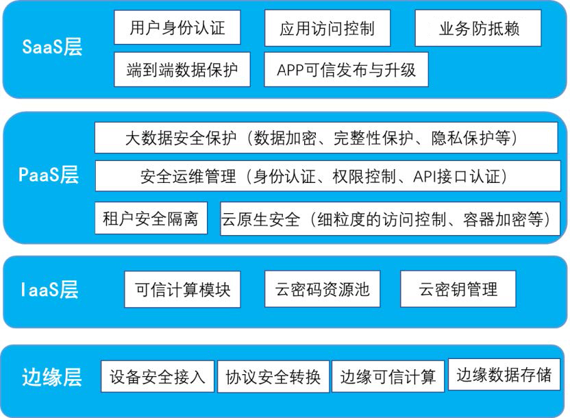 白皮书针对工业互联网架构不同层级、各个环节涉及的身份鉴权、传输安全、敏感信息保护等安全需求,构建工业互联网密码应用体系,包括搭建融合开放灵活的工业互联网络、构建安全可信的工业互联网平台、打造具有内嵌安全的工业智能设备、支撑智能制造产业链价值协同、推动数据要素市场化流通。其中,工业互联网平台密码应用架构如下: