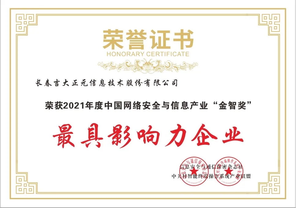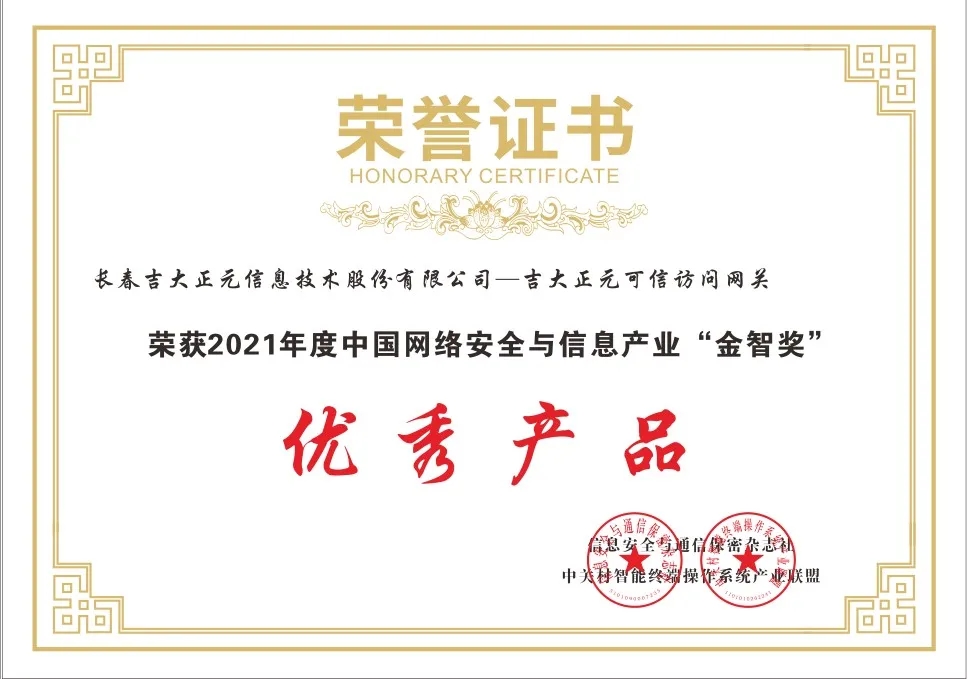 长春吉大正元信息技术股份有限公司(简称:吉大正元 股票代码:003029)斩获两项大奖:吉大正元公司荣获“2021年度最具影响力企业奖”、吉大正元可信访问网关荣获“2021年度优秀产品奖”。