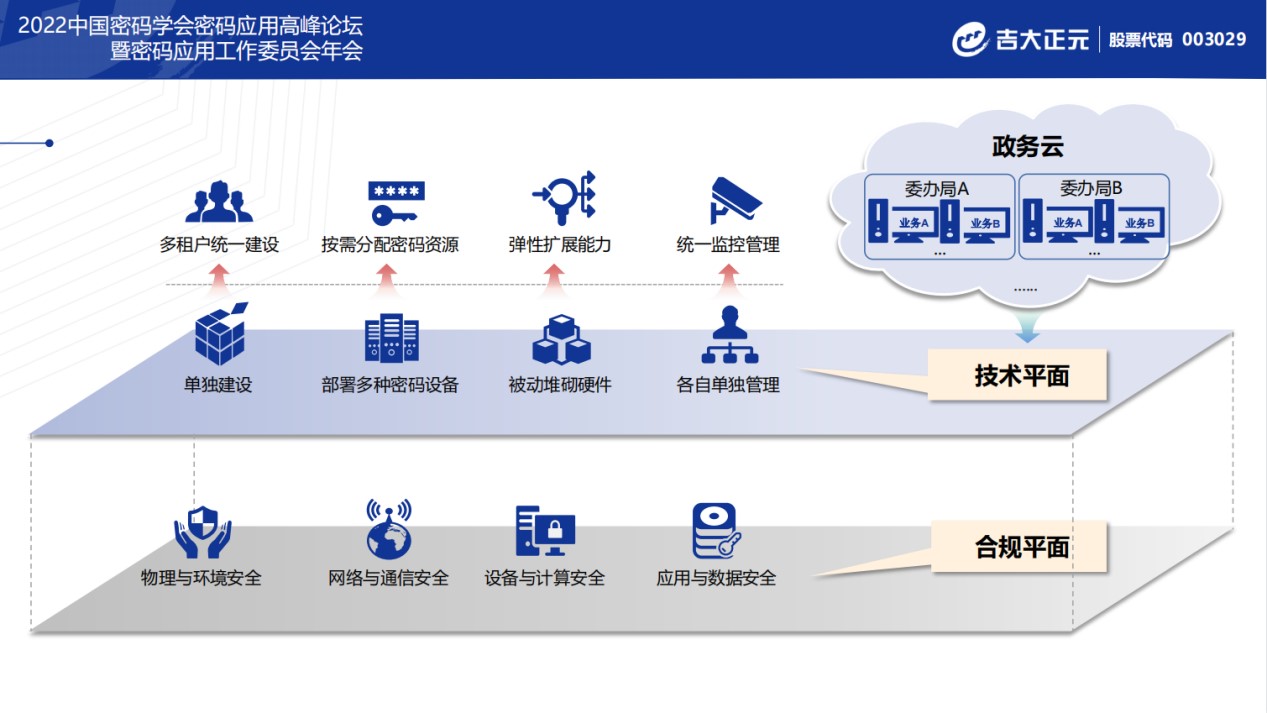 政务云系统涵盖了统一身份认证系统、数字签名服务系统、密钥管理系统、时间戳服务系统等密码应用需求场景,通过云服务模式提供给云租户,保证其业务系统安全。