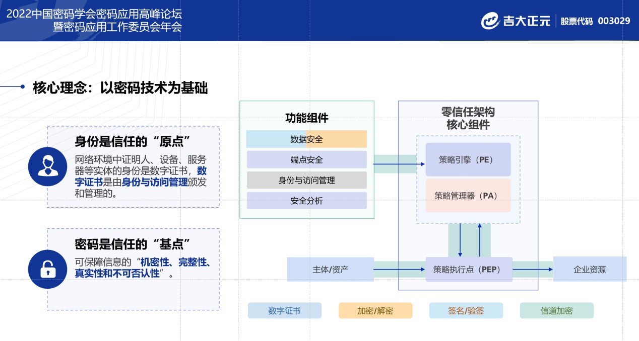 会议邀请众多专家学者聚焦应用密码学、区块链安全、可信计算、大数据安全等领域,共同探讨密码学应用领域的最新成果和发展趋势。吉大正元产品中心总经理陈宁受邀参加3月27日上午举办的高速密码应用创新论坛,通过线上的方式发表《密码技术在多个领域的应用实践》的主题演讲。