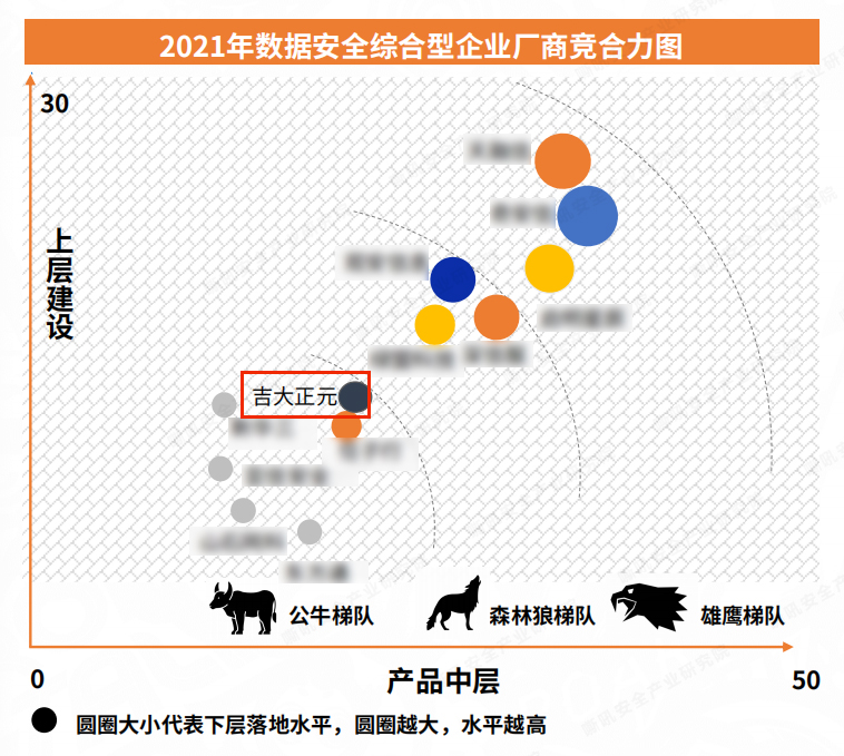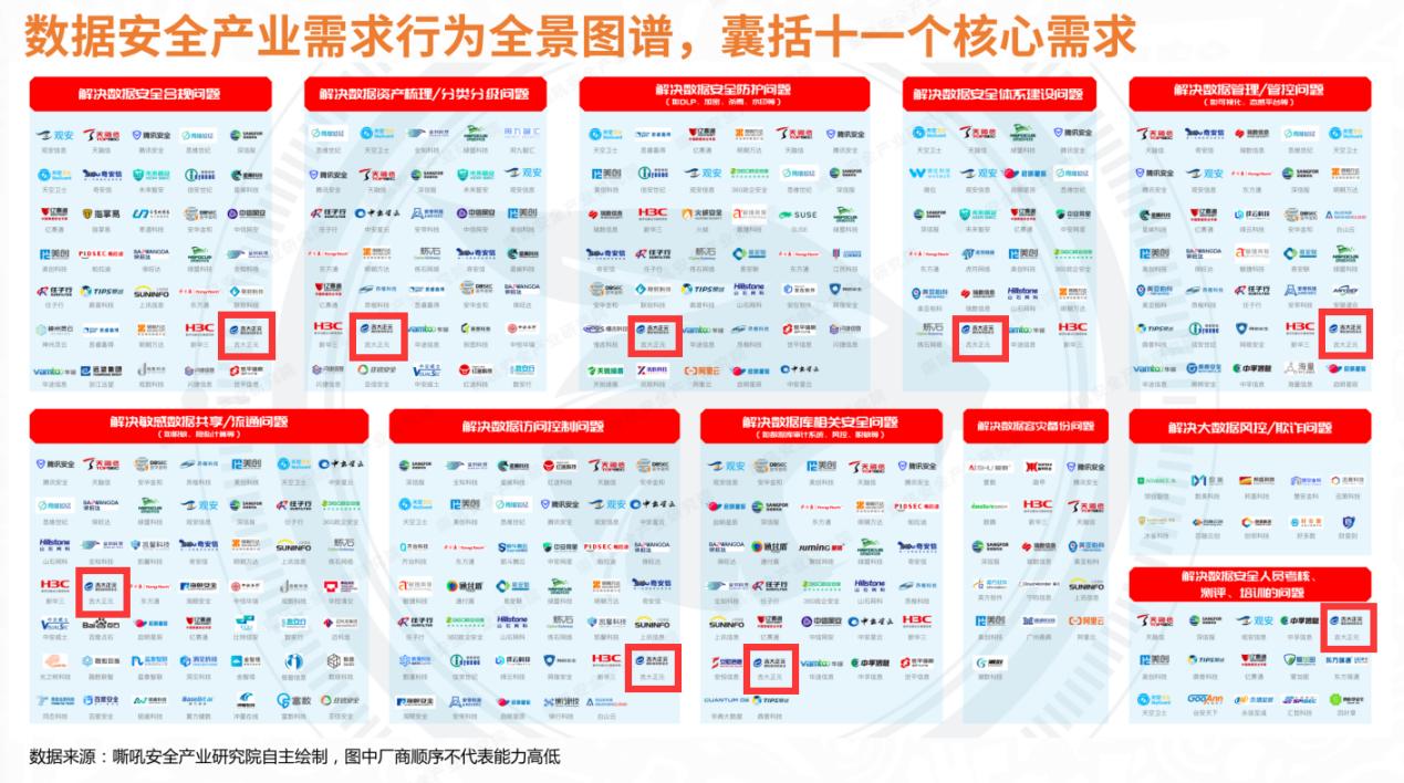 近日,由嘶吼安全产业研究院撰写的《2022数据安全产业竞合力洞察报告》发布。在报告中,长春吉大正元信息技术股份有限公司(简称:吉大正元 股票代码:003029)作为2021年数据安全综合型企业厂商代表之一成功入选“数据安全综合型企业厂商竞合力图”,同时报告显示,在“数据安全产业需求行为全景图谱”的11项产业需求中,公司拥有九项细分领域能力,在数据安全综合性企业中名列前茅。