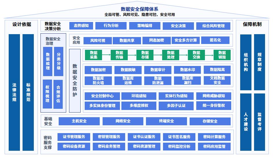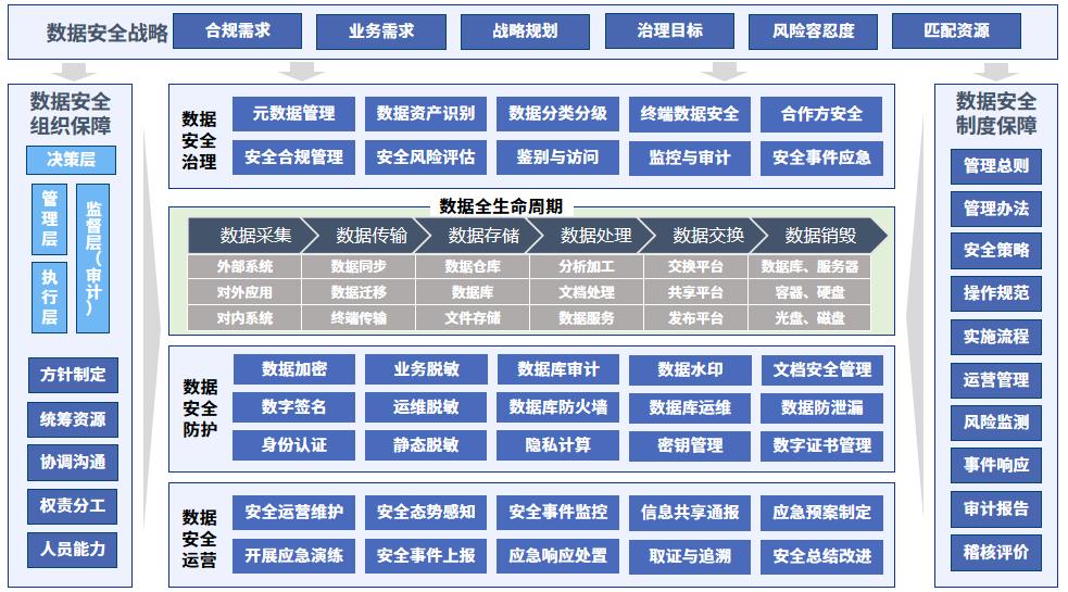 数据合规建设总体思路应以国家数据安全法律法规和企业数据安全相关要求为准绳,以“依法合规、技术驱动、安全运营”为导向,主动适应金融行业新形势业务发展以及数字化转型需求,构建包括数据安全管理、技术防护、队伍建设、安全合规管控等在内的合规体系,打造数据合规管控平台,保障相关数据产品的安全合规运行。