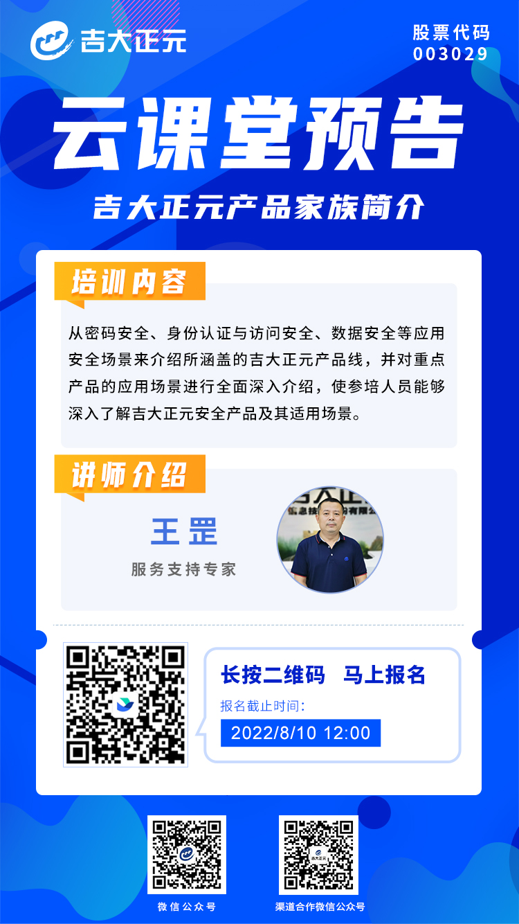 云课堂预告 | 吉大正元产品家族简介