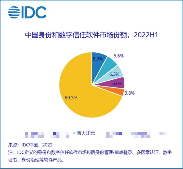 据IDC最新发布的《2022年上半年中国IT安全软件市场跟踪报告》显示,长春吉大正元信息技术股份有限公司(以下简称:吉大正元 股票代码:003029)在中国身份和数字信任软件市场份额中占比6.3%,排名第三。