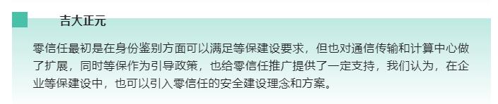 近日,由安全牛举办的《现代企业零信任安全落地实践应用指南》线上发布会在北京圆满落幕。长春吉大正元信息技术股份有限公司(简称:吉大正元 股票代码:003029)作为零信任安全领域代表企业受邀出席会议并发表主题演讲。会上同期发布《现代企业零信任安全落地实践应用指南》,吉大正元零信任落地实践案例作为行业优秀案例代表入选报告。