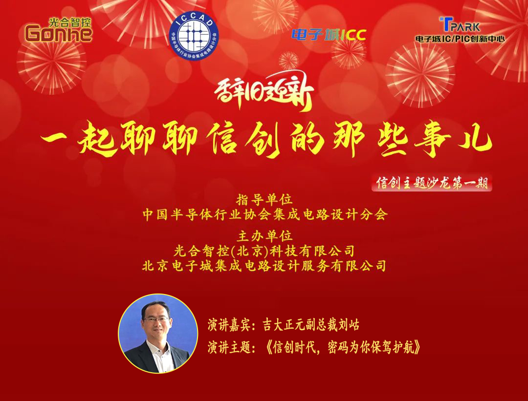 2022 年 12 月 28 日,由中国半导体行业协会集成电路设计分会、北京半导体行业协会指导下的信创主题论坛第一期圆满举办。中国半导体行业协会集成电路设计分会秘书长程晋格、长春吉大正元信息技术股份有限公司副总裁刘岵、光合智控(北京)科技有限公司总经理张玉新、北京电子城集成电路设计服务有限公司总经理兰文丽等领导出席了活动。