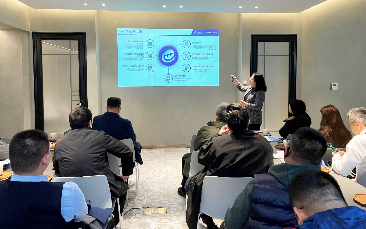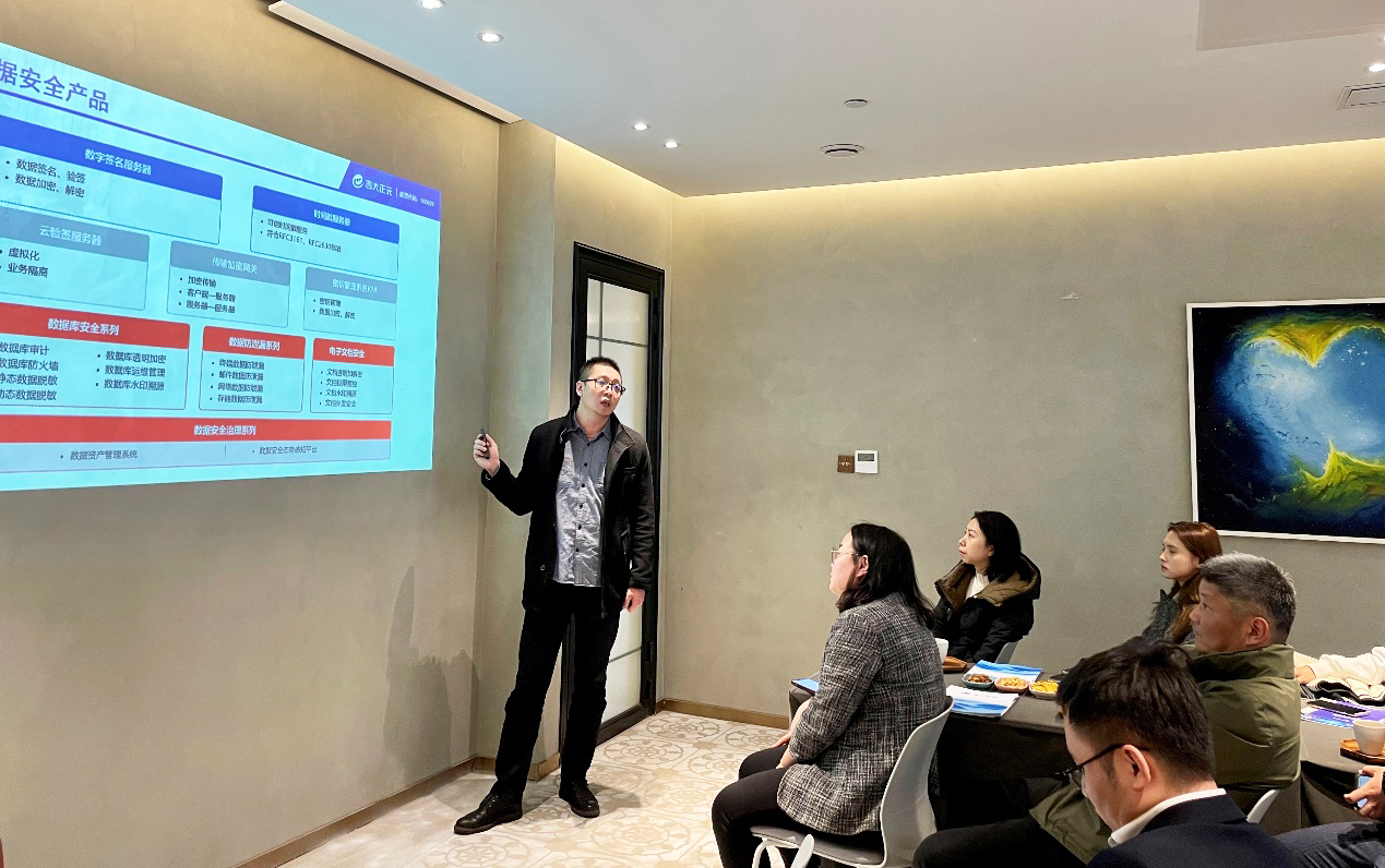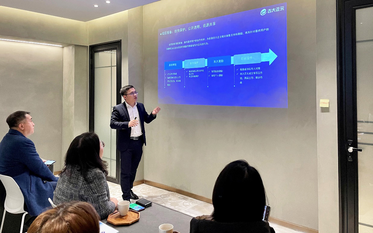 吉大正元华东解决方案总监赵鑫为到场伙伴详细介绍了吉大正元产品方案家族以及适用场景,并重点分享金融签名池、信创改造、保险业电子保单业务、证券业国密安全介入等金融行业专项解决方案,有效帮助各渠道伙伴建立系统的知识架构。华东区渠道经理王铭泽为渠道伙伴分享了最新渠道政策,为2023年华东区渠道伙伴进一步分享了公司众多利好政策,为渠道伙伴业绩新增长打下坚实基础。