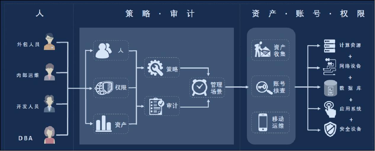 随着业务系统的迅速发展,运维安全的各种问题也逐渐凸显,多种支撑系统和主帐号数量的不断增加,网络规模迅速扩大,原有的账号口令、权限认证、审计管理措施已不能满足企业目前及未来业务发展的要求,主要表现为:独立数据库形成身份信息孤岛,自然人身份和业务系统帐号重叠,缺乏集中统一的资源授权管理平台造成孤立的审计,并缺乏关联分析,无法对产生的各类问题有效进行审计追踪。