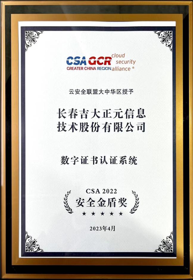 会上,吉大正元(003029)“数字证书认证系统”成功获评“CSA 2022安全金盾奖”,该奖项旨在表彰安全产品或安全服务具备核心竞争力,能够解决当前行业领域亟需解决的主要问题,在相关领域占据重要的市场份额,且具备一定创新性,并得到业界认可,是相关安全领域的佼佼者。