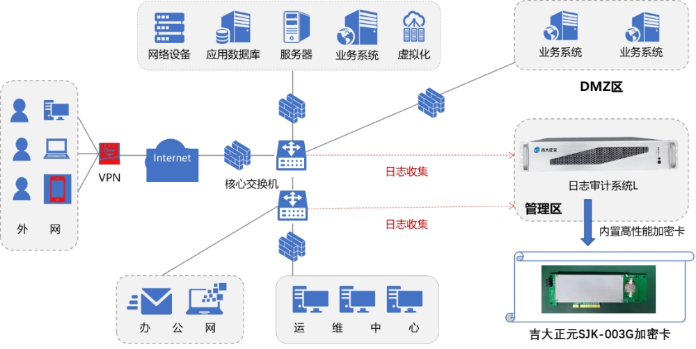 随着信息化、智能化得发展,企业信息系统数量急剧增加,企业的信息运维管理变得愈加重要,针对信息系统的日志收集和分析作为解决企业数字化运维管理的重要支点,迫切需要一套成熟的产品应对系统的升级变化,同时等保密评等要求也对密码技术应用提出了明确的要求。
