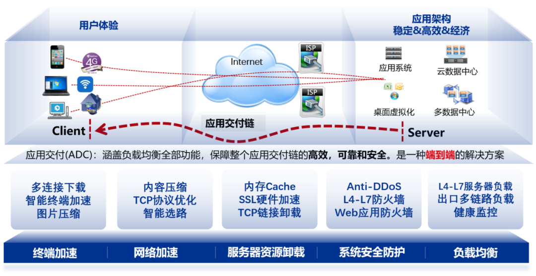 作为一款强大的网络安全设备,应用交付网关可为企业提供更全面的安全保障,具备全局负载、链路负载、应用负载、L4-L7层防火墙、WEB防火墙、数据压缩加速等功能,在保证应用性能的同时,保证了信息的安全性。