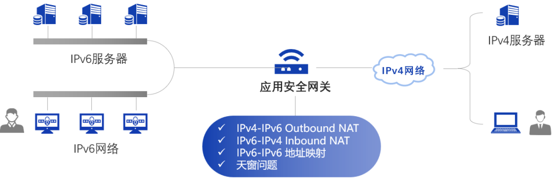 吉大正元应用交付网关作为传统的应用系统支撑产品,自身基于IPv4/IPv6双栈设计,全面支持IPv6网络应用。系统提供NDP、IPv6路由、IPv4/IPv6地址转换、DNS64、NAT64等众多功能,帮助用户轻松构建IPv6网络的应用交付基础架构,可有效地解决IPv6改造面临的“天窗”问题、DNS解析问题、双栈支持、地址转换等问题。