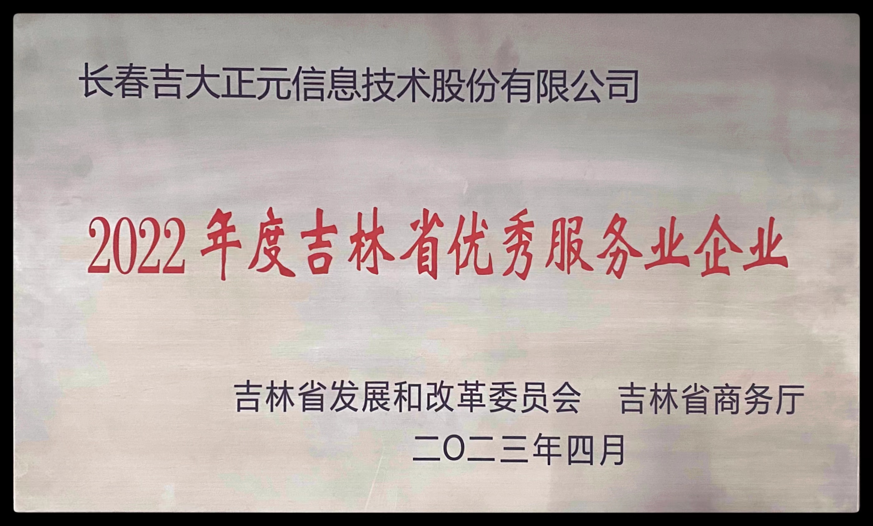 2023年4月,经吉林省发展和改革委员会、吉林省商务厅联合推荐,授予吉大正元“2022年度吉林省优秀服务业企业”奖牌,这也是公司连续两年获得该项荣誉。