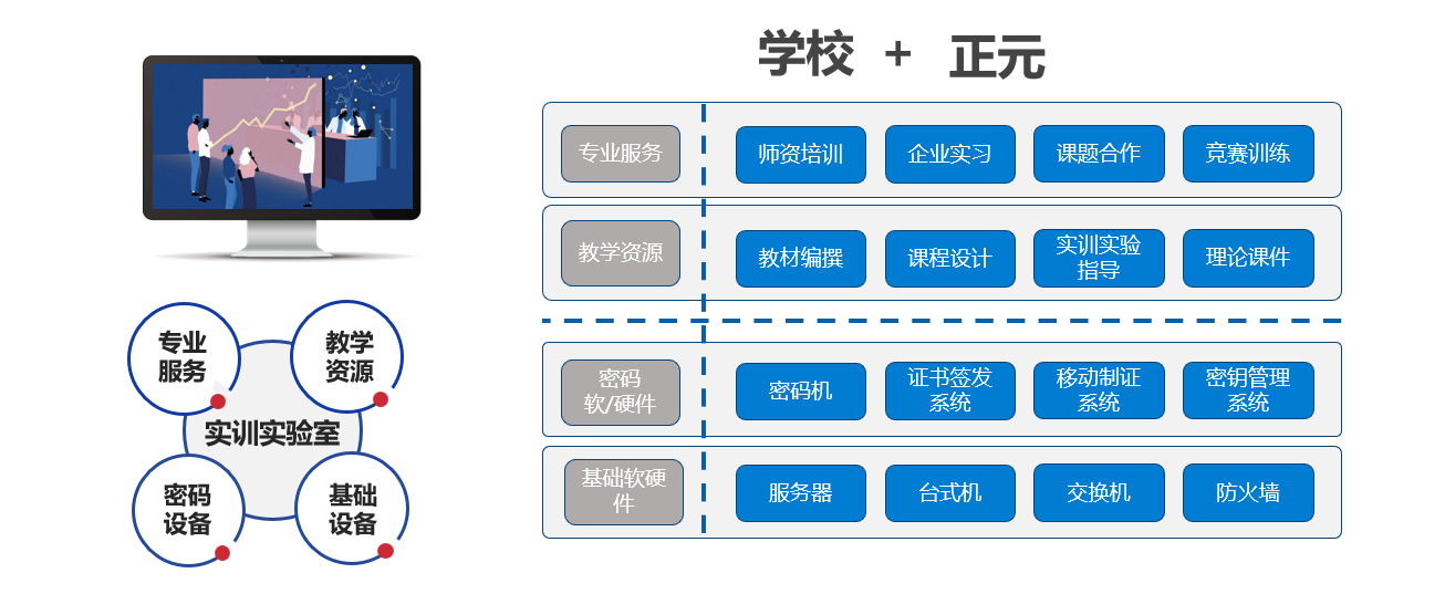 吉大正元可提供集“学校安全、学生安全、学科安全”三位一体的数字校园安全防护体系,依托吉大正元数字校园密码安全理念:坚持以“密码技术”为核心,聚焦密码基础设施、身份安全与数据安全领域,积极打造教育行业多场景应用主动免疫安全保障。
