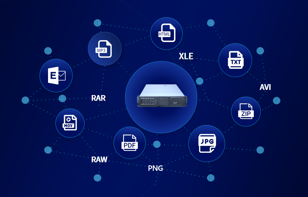 通过文件类型特征识别、流分析、嵌套提取等技术手段,实现包括微软OFFICE系列、金山WPS、PDF文档等几百种文件类型的识别和上百种文件的文字提取,并将文字统一转化编码,用于内容检查。