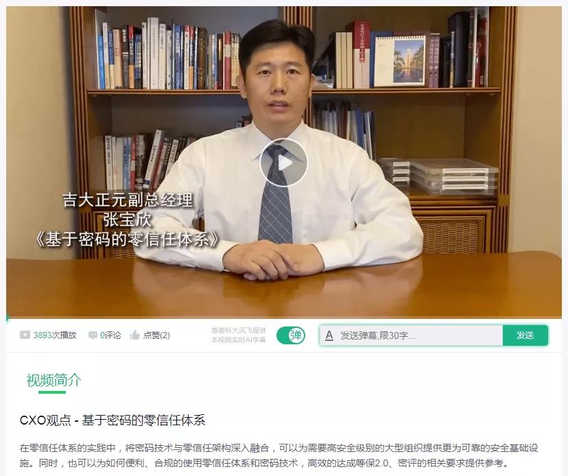 吉大正元作为国内知名的信息安全厂商、电子认证领域的先行者和技术引领者、国内领先的公钥基础设施(PKI)解决方案提供商和安全服务商,应邀参加ISC 2020 第八届互联网安全大会,在ISC 2020云展馆中有吉大正元展位和安全业务介绍,在ISC 2020特色栏目“CXO观点”中有《基于密码的零信任体系》主题演讲。