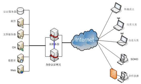 身份认证:提供高强度的身份认证方式,确保登录的用户确实为授权的个体,消除未授权用户非法访问的风险。