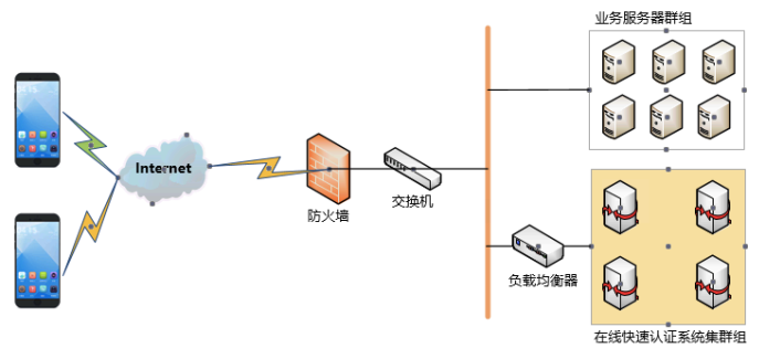 负载均衡部署:在线快速认证系统支持集群配置,配置集群后,集群中所有节点自动同步业务数据和配置信息。通过和第三方负载均衡设备联合部署,对用户提供高可用性服务。