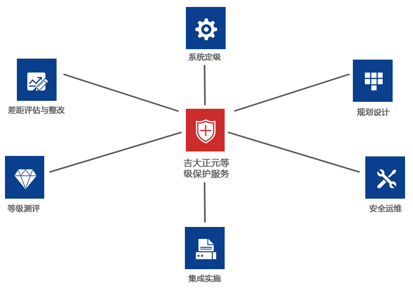 服务内容等级保护制度可以优化信息安全资源配置,确保重要信息系统得到重点保护,是解决信息安全问题的十分有效的方法。吉大正元等级保护服务是在研究和总结国家相关标准和政策,并结合自身产品、服务及多年安全项目建设的基础上,为客户提供的安全建设服务。围绕等级保护的系统定级、差距评估与整改、规划设计、集成实施、等级测评、安全运维的全部建设过程,吉大正元都将提供专业化、精细化的服务,帮助客户从设备、制度、人员等各个角度进行建设或者改进,在最大限度保护信息系统的同时,通过国家等级保护测评。