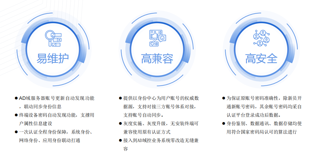 方案中也针对AD域其他能力迁移给出具体保障措施,如:符合信创平滑过渡支撑赋能、单点登录支撑赋能等。为具有中国特色的信息化建设贡献吉大正元的一份力量。
