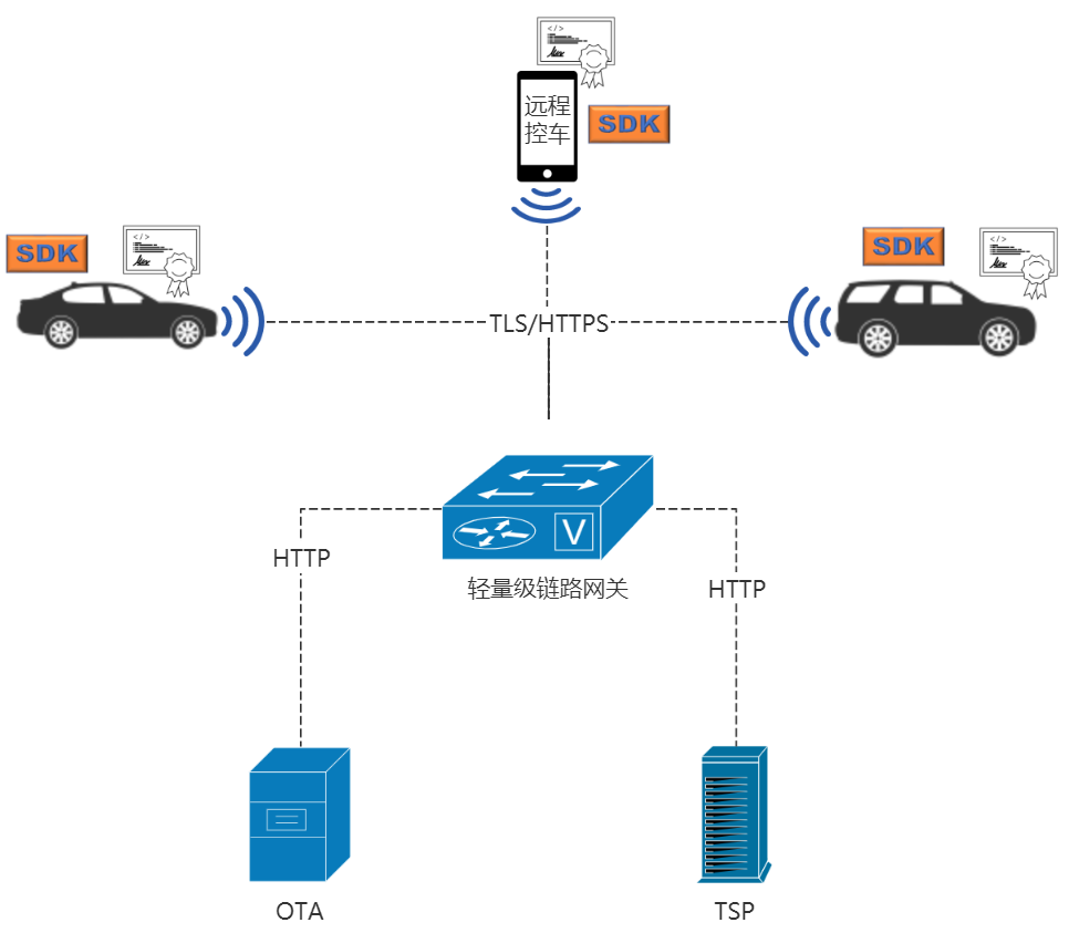 基于车企当前多个应用需要支持TLS的需求,研发轻量级网关产品,为车企多个应用系统提供统一的TLS链路门户,产品架构图如下。