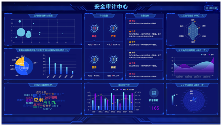 安全审计中心应实现海量信息的采集、分析与展示,应用大数据技术对用户行为进行分析,快速发现单位网络信息系统异常行为和安全违规事件,保障客户内部数据安全,应符合并体现信息安全管理体系和等级保护的要求,并能够进行持续运营和改进。